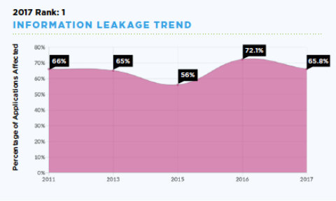 据White Hat Security公司称,每两个应用程序中就有一个具有某种类型的信息泄漏漏洞。同时,Veracode认为这一比例应该更高,所有应用程序中有65.8%会显示有关应用程序、网络环境或用户的敏感信息,这些信息可能会被恶意行为者用于当前的或未来的针对应用程序的攻击活动。