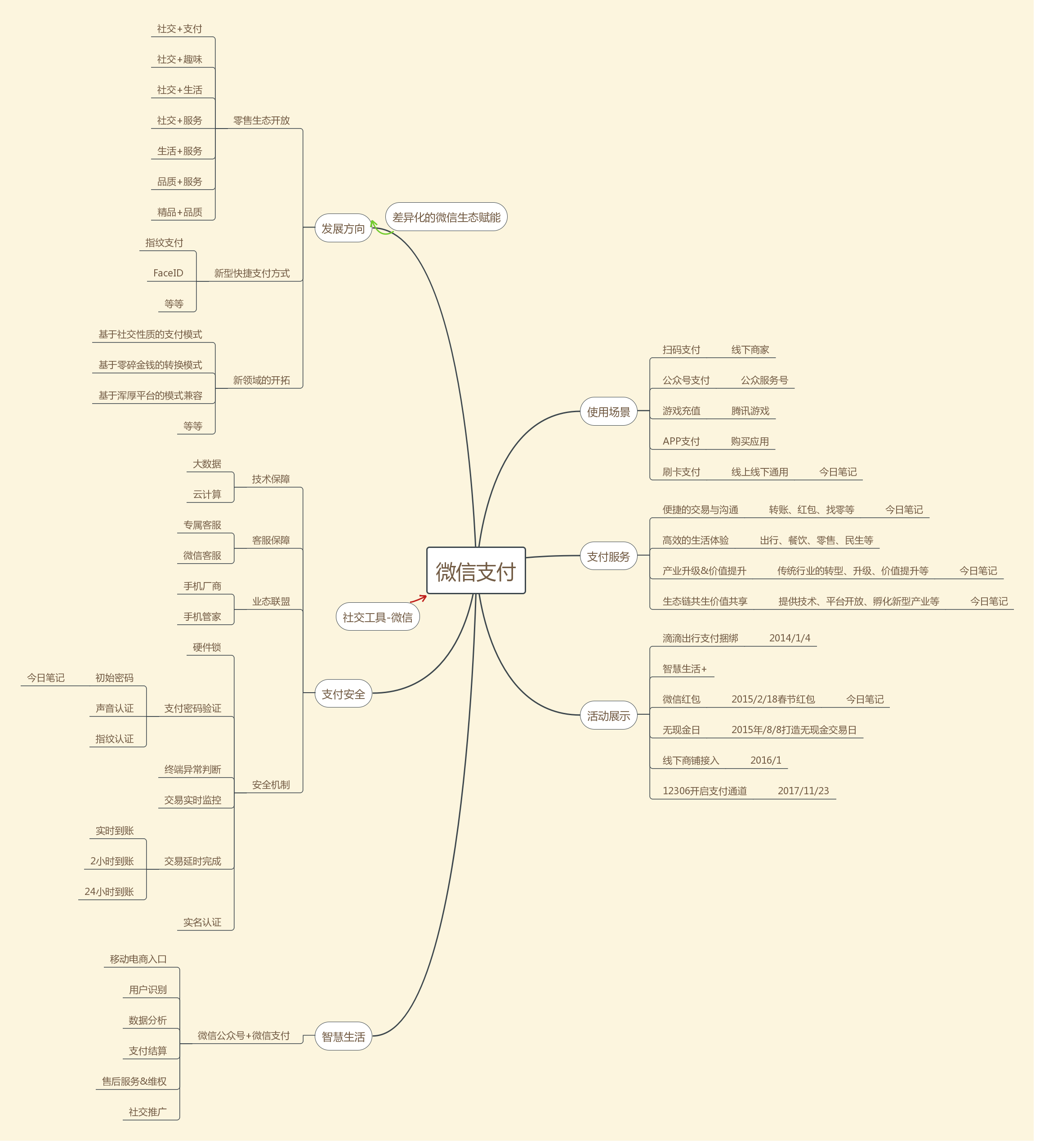 附带微信支付脑图(信息来源:百度百科的微信支付原文,作者依照葫芦画的瓢)