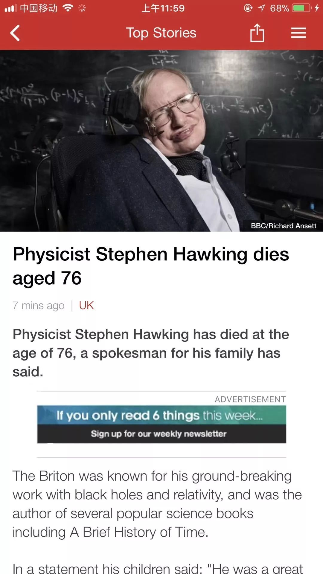 今日,英国著名物理学家斯蒂芬·霍金去世,享年76岁。霍金家人声明:他的勇气与坚持鼓舞了全世界。