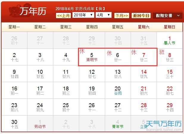 2018年清明放假安排表图